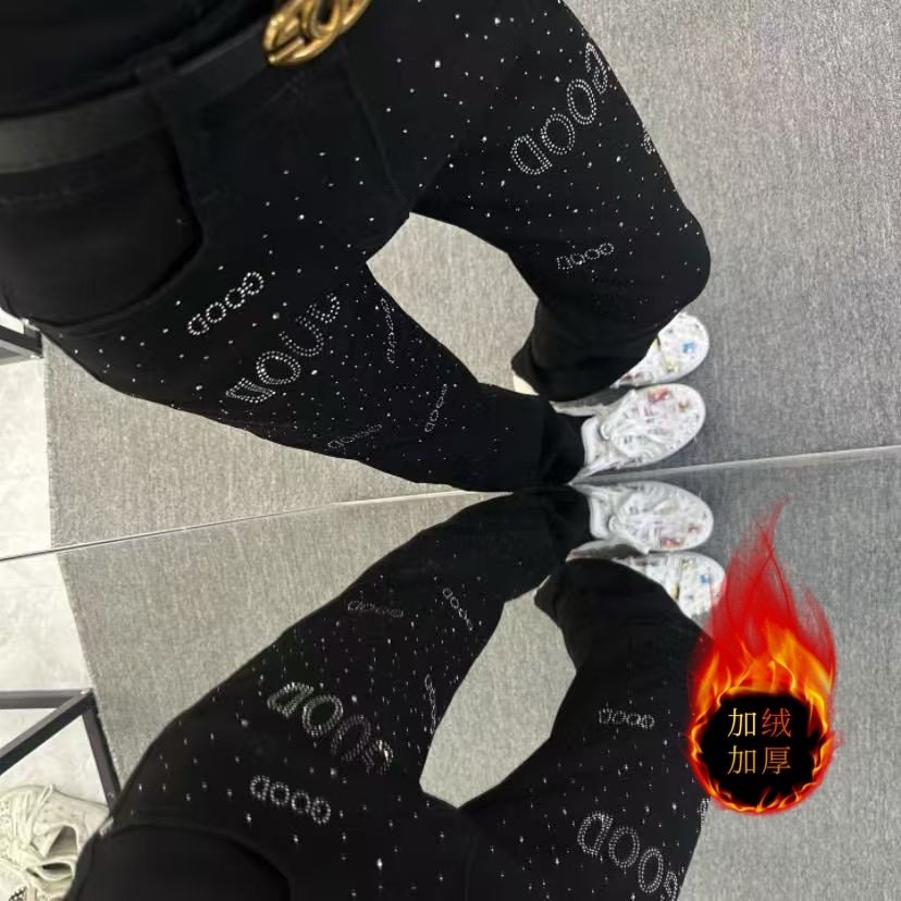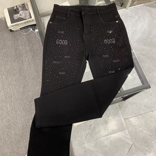 子男 百搭休闲直筒牛仔裤 潮牌痞帅GOOD烫钻裤 子男网红黑色复古修身
