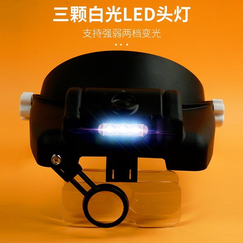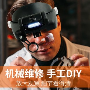 头戴式 放大镜子老年人阅读高清电子维修表专用花眼倍便携带灯充电