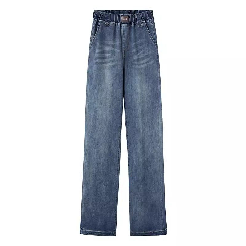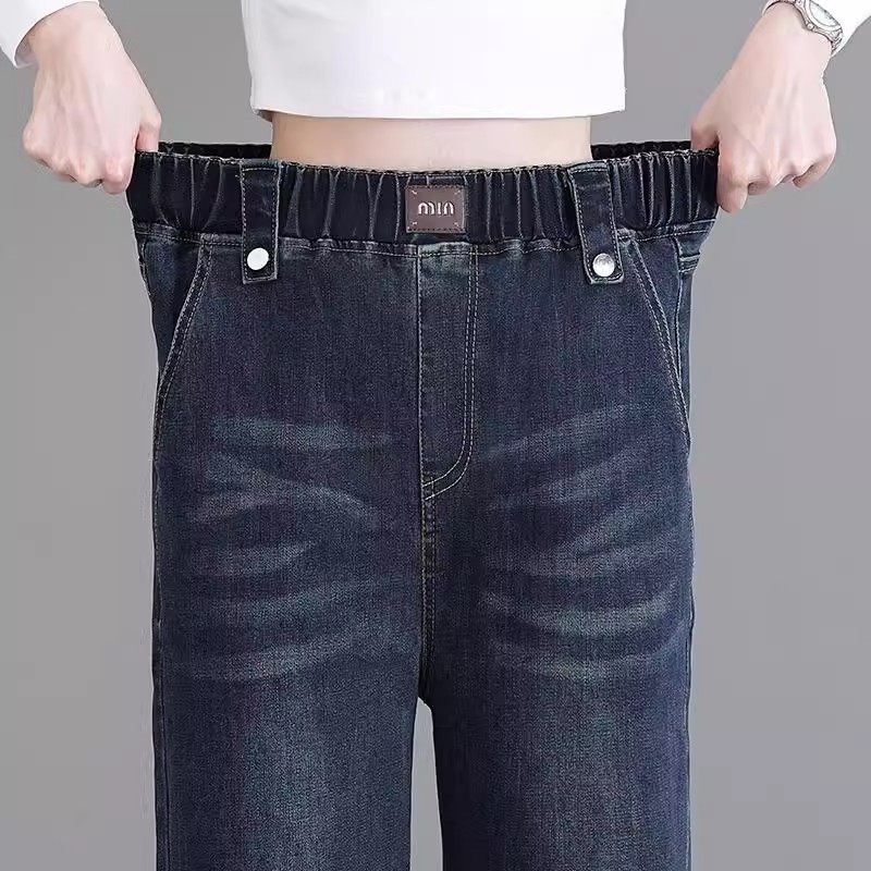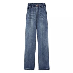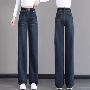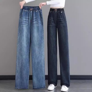 大码 宽松直筒裤 高腰显瘦窄版 松紧腰牛仔裤 拖地裤 新款 阔腿裤 女秋季