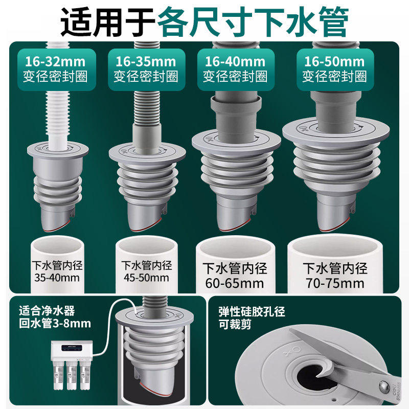 下水管道防返臭止逆阀器密封塞洗衣机排水管5075通用密封圈堵口盖
