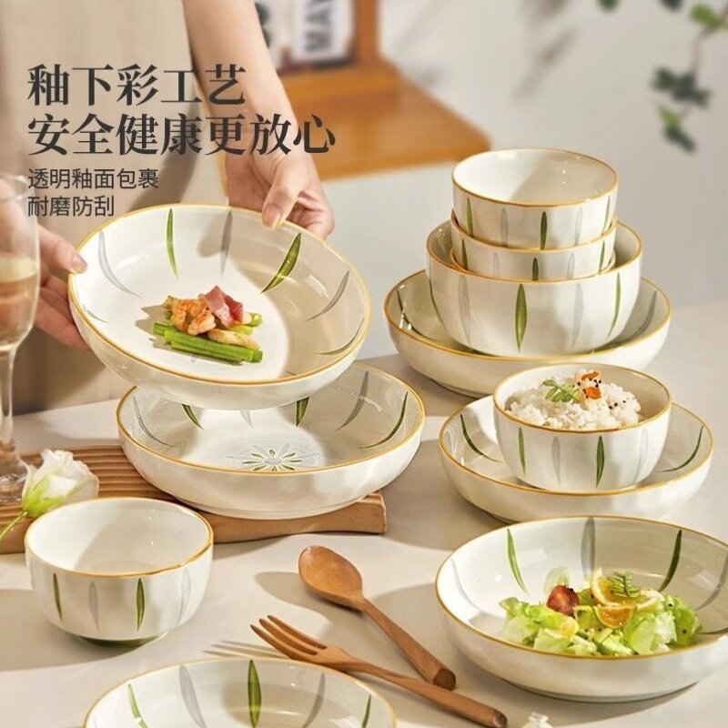 家用泡面汤碗盘子组合吃饭中式 18头碗碟套装 4人碗筷餐具 新款 特价