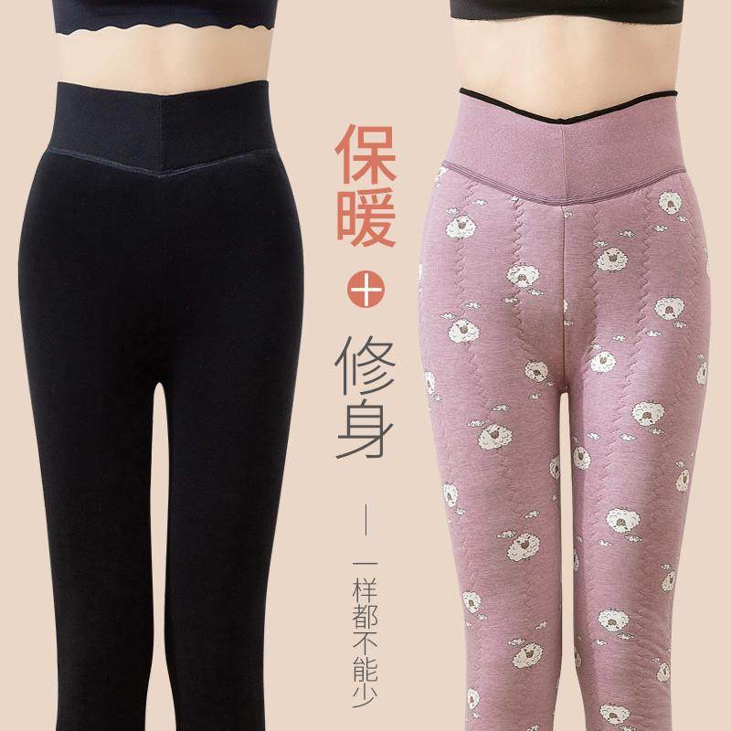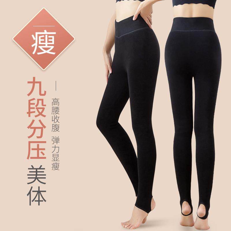 踩脚收腹保暖棉裤 秋冬外穿加绒连袜加厚羊绒秋裤 女薄款 高腰打底裤