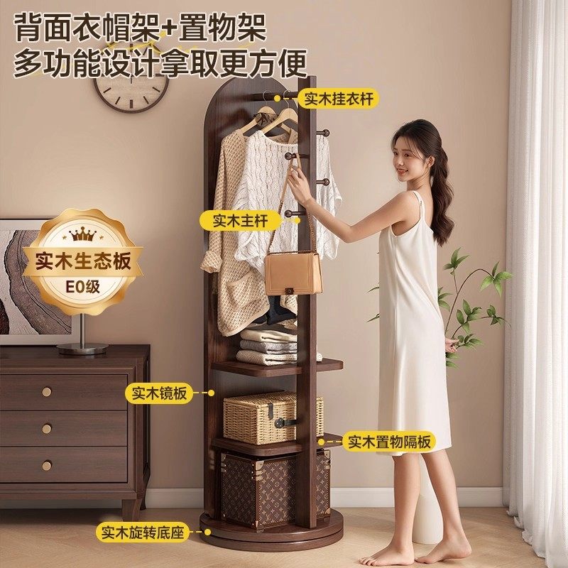 全身镜落地镜家用衣帽架一体穿衣镜可旋转移动女生卧室大试衣镜子