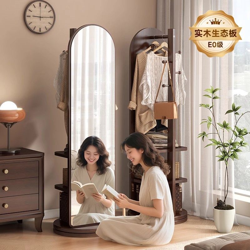 全身镜落地镜家用女生卧室可旋转移动试衣镜子带挂衣架一体穿衣镜