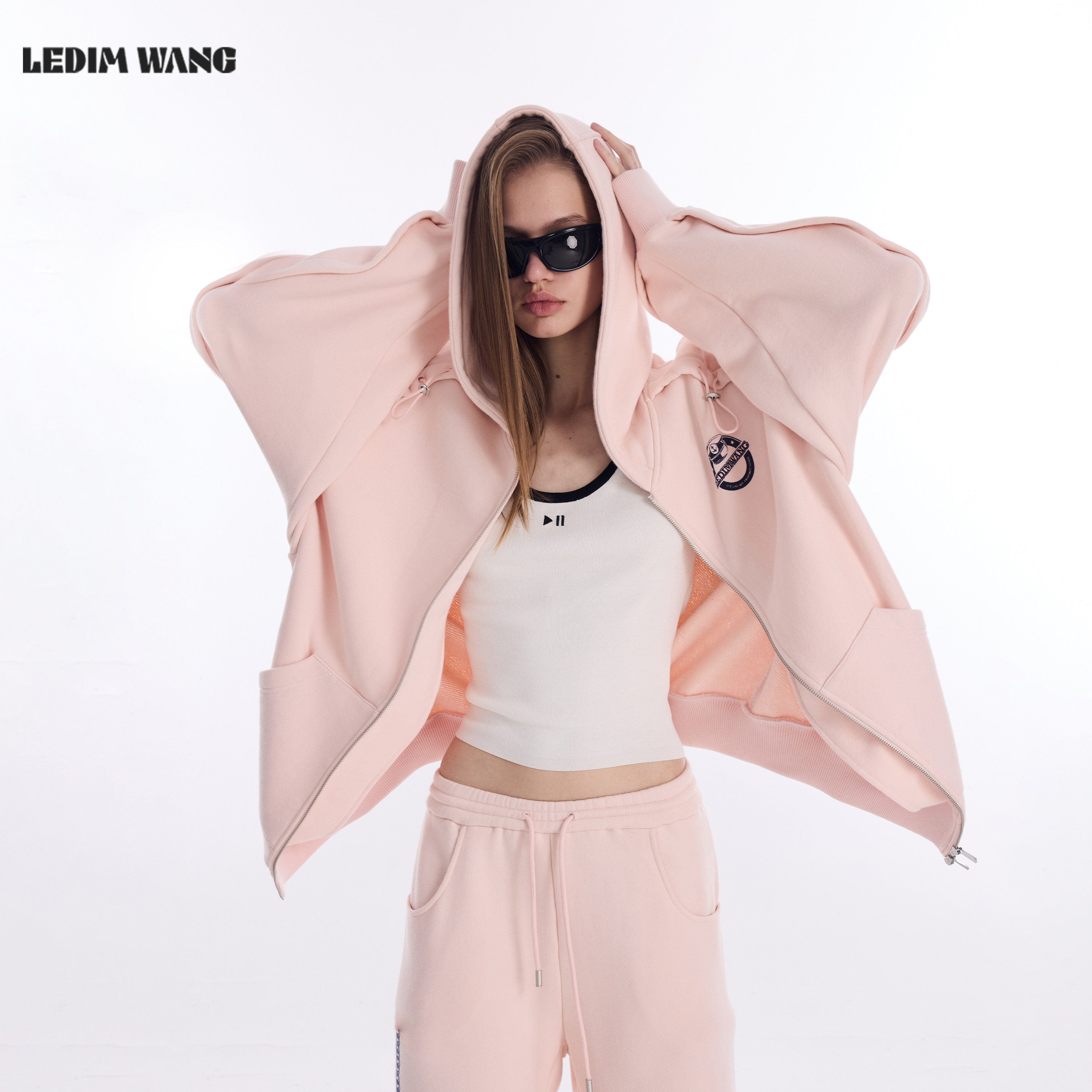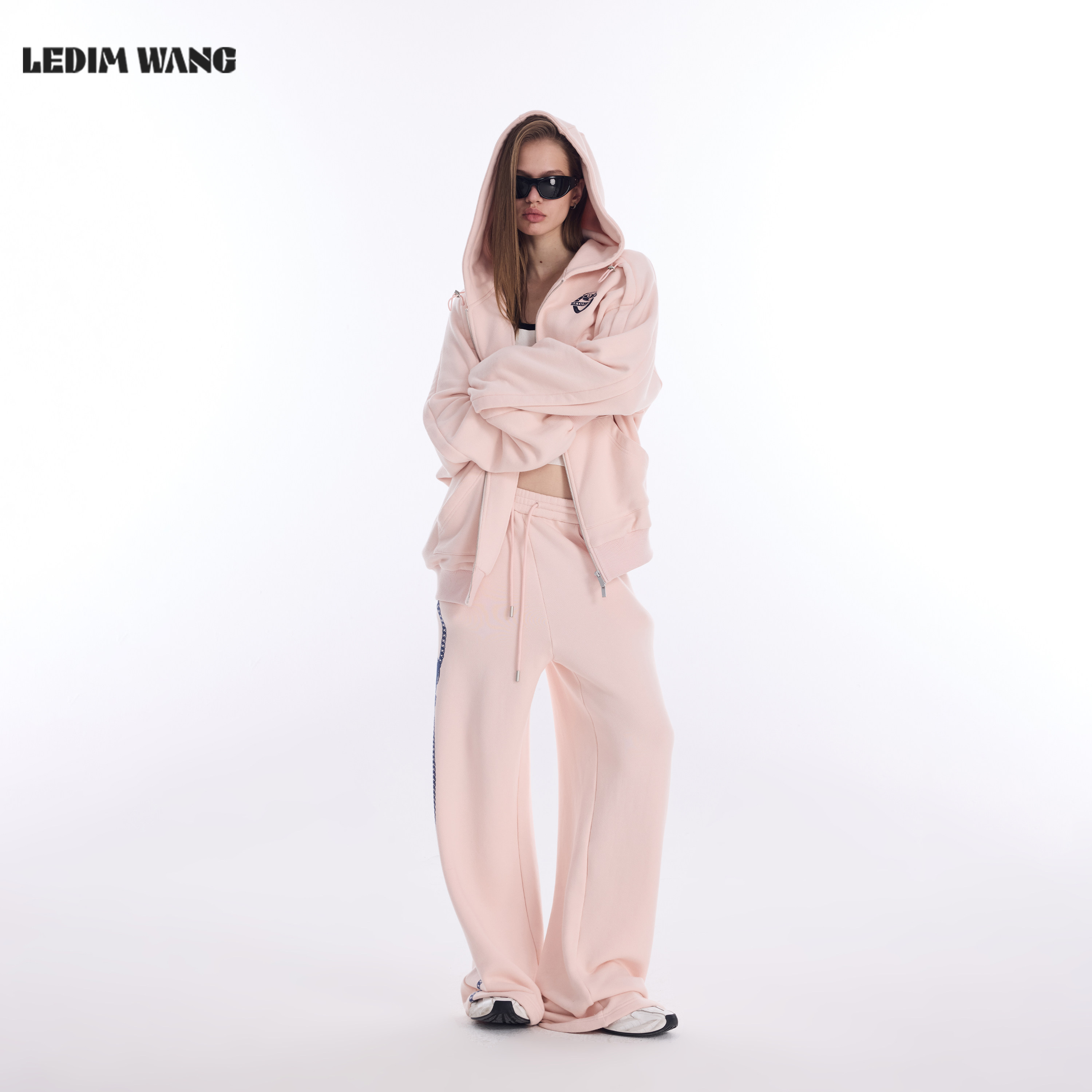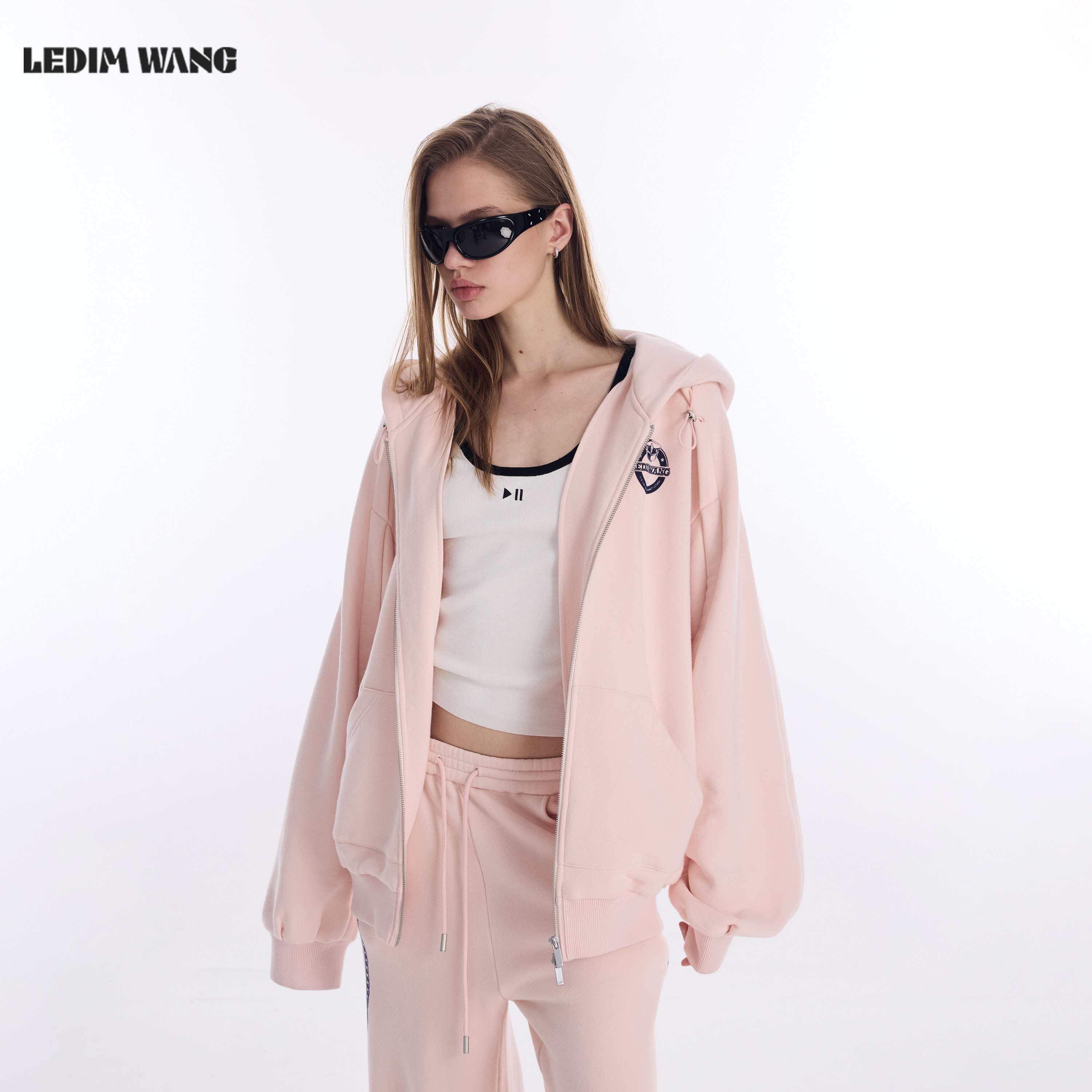 26早春新款 卫衣女款 拉链松弛感外套 WANG粉色印花连帽开衫 LEDIM