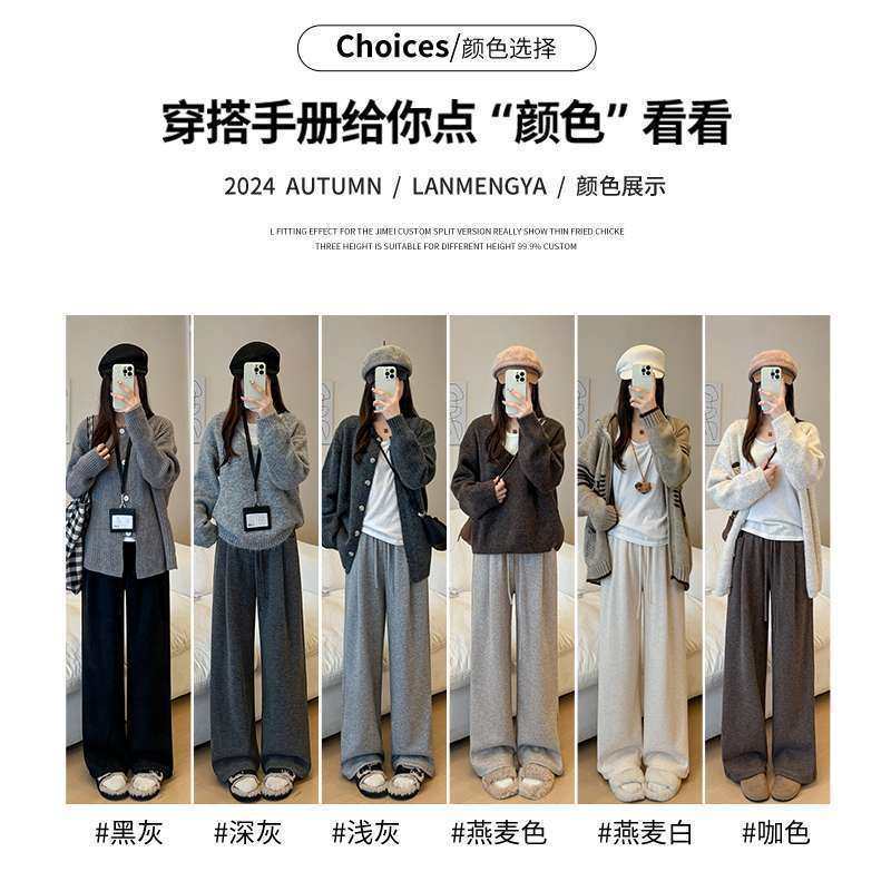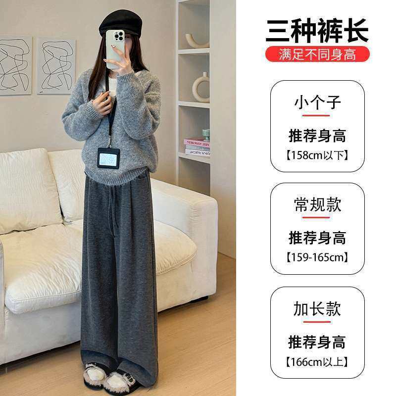 外穿休闲阔腿裤 加绒加厚保暖显瘦棉裤 女秋冬新款 灰色羊羔绒糯米裤