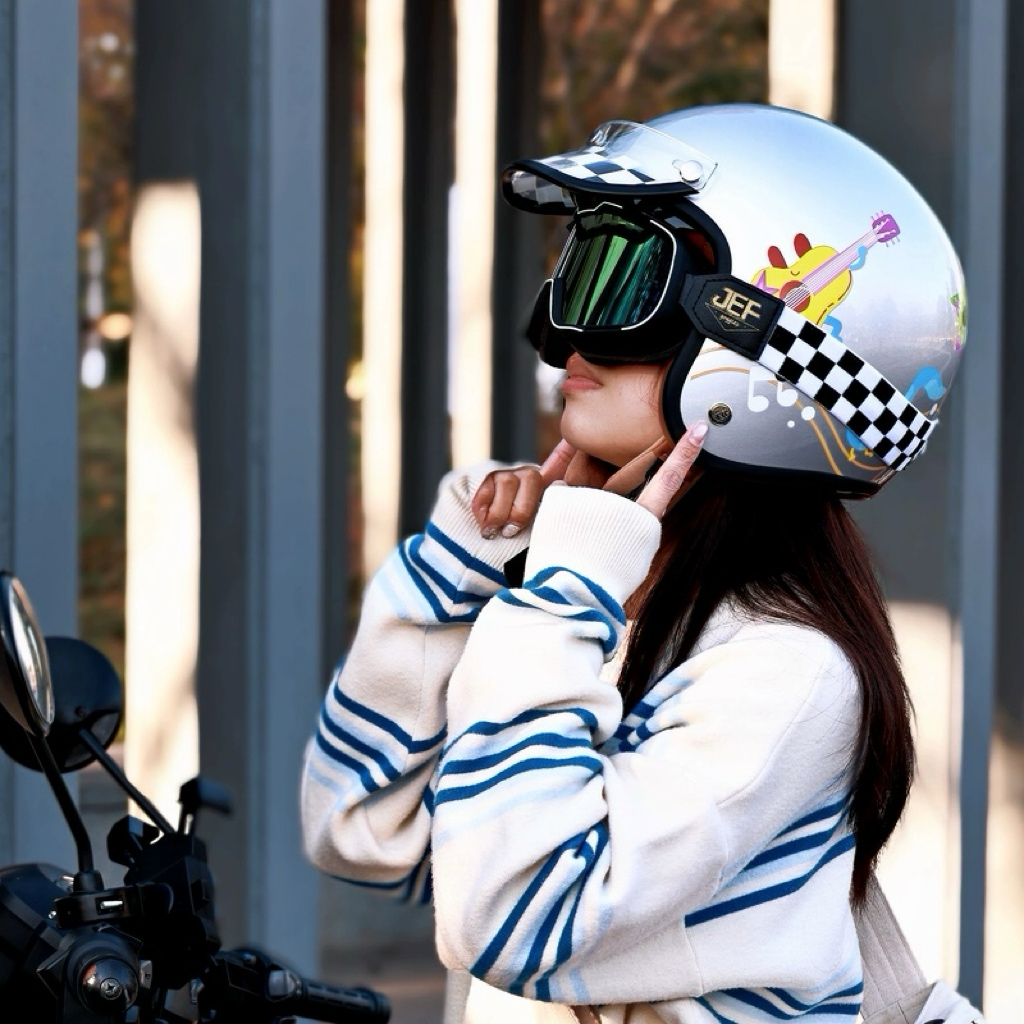 新国标3C认证电动摩托车头盔男女士夏季 透气轻便头盔 复古半盔四季