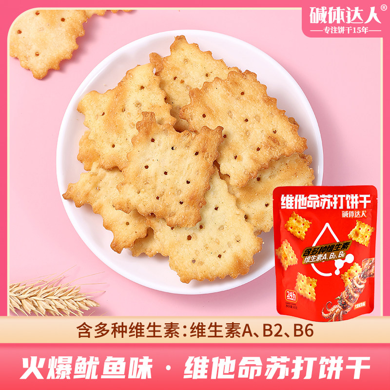 鼎缘碱体达人80g苏打饼干不规则香葱龙虾鱿鱼味零食休闲食品解馋