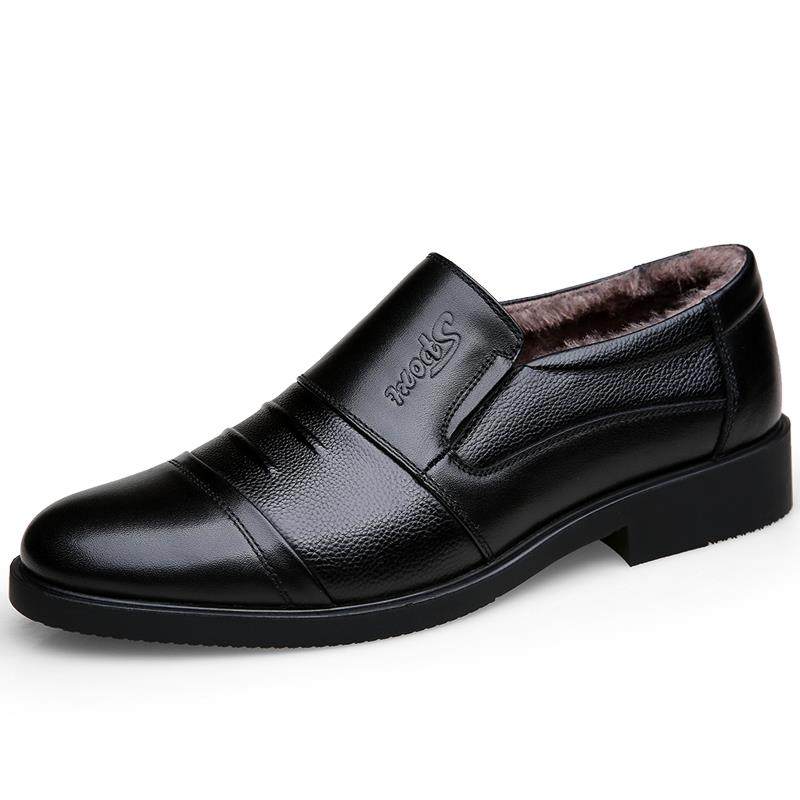 男鞋 男商务休闲防滑中老年爸爸鞋 真皮新款 加绒棉鞋 冬季 啄木鸟皮鞋