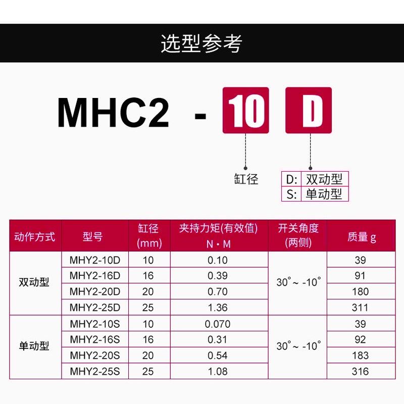 10D 25D MHC2 20D 32D夹爪缸 16D 小型支点开闭气动手指气缸MHC2
