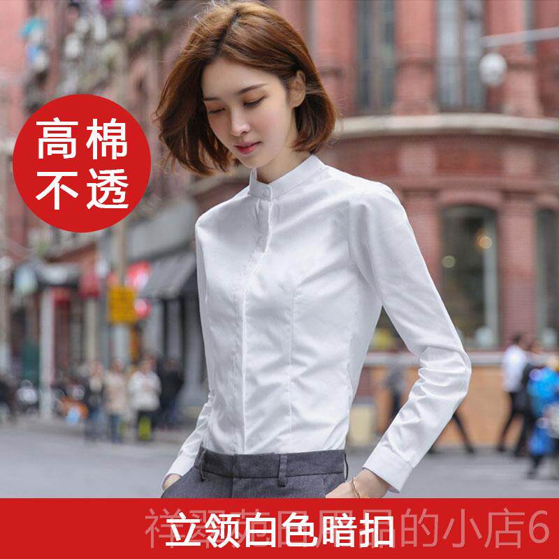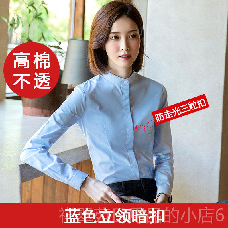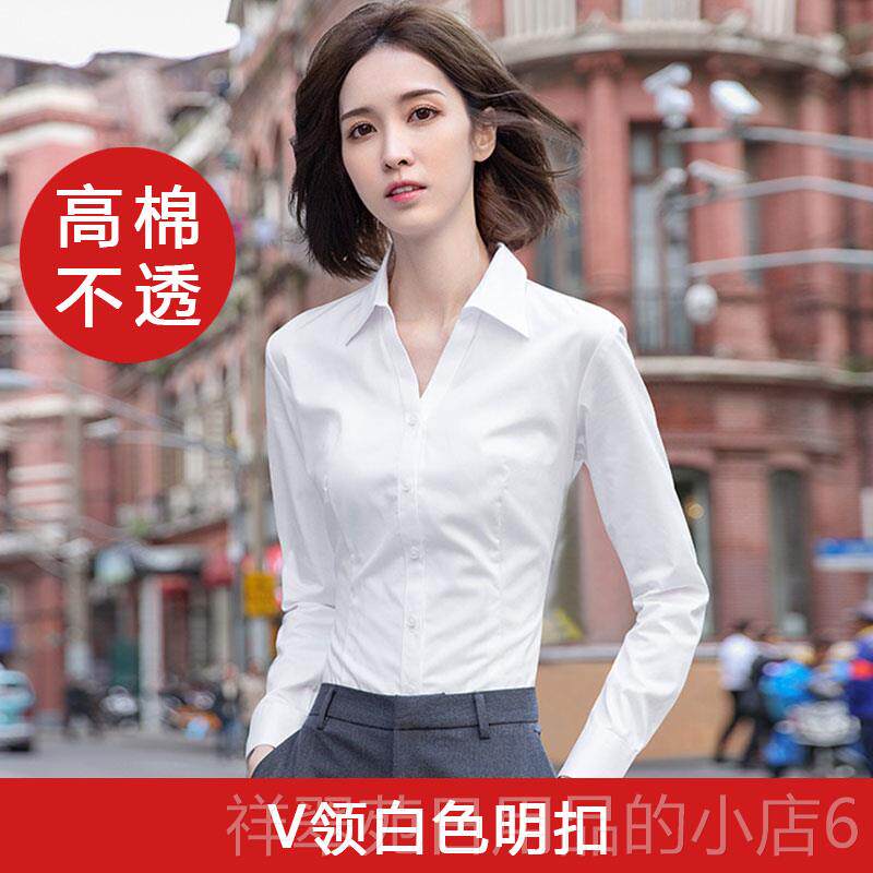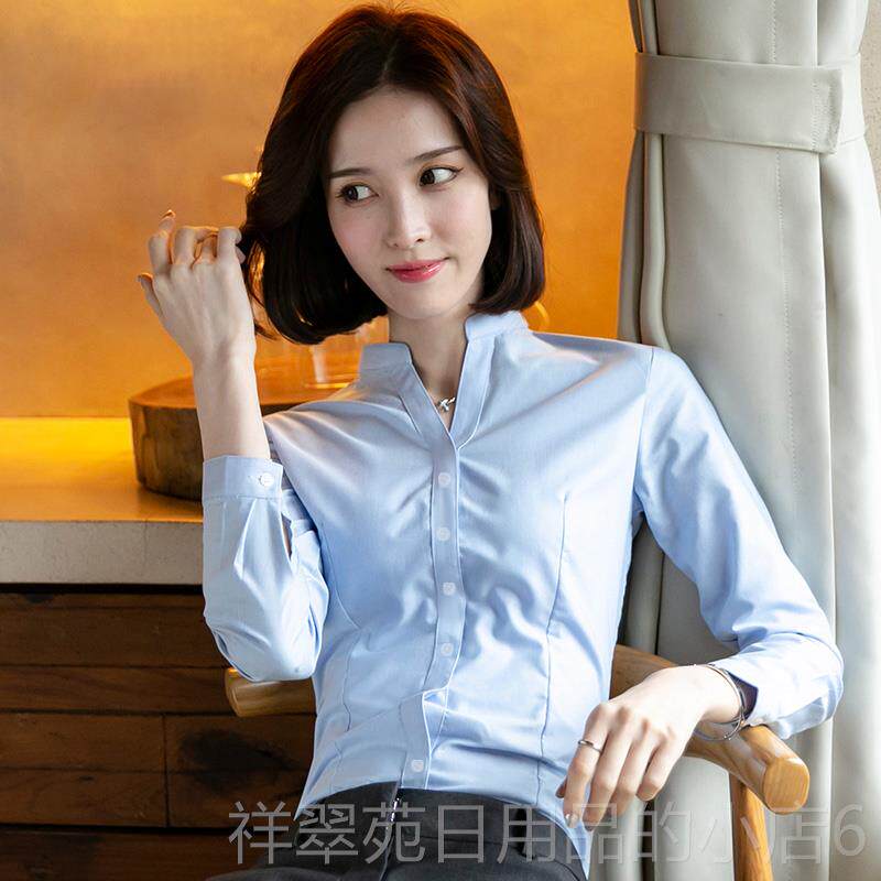 通勤修女身立领衬百搭气质作4S店 夏长衣袖 高档v领白衬衫 职业正装