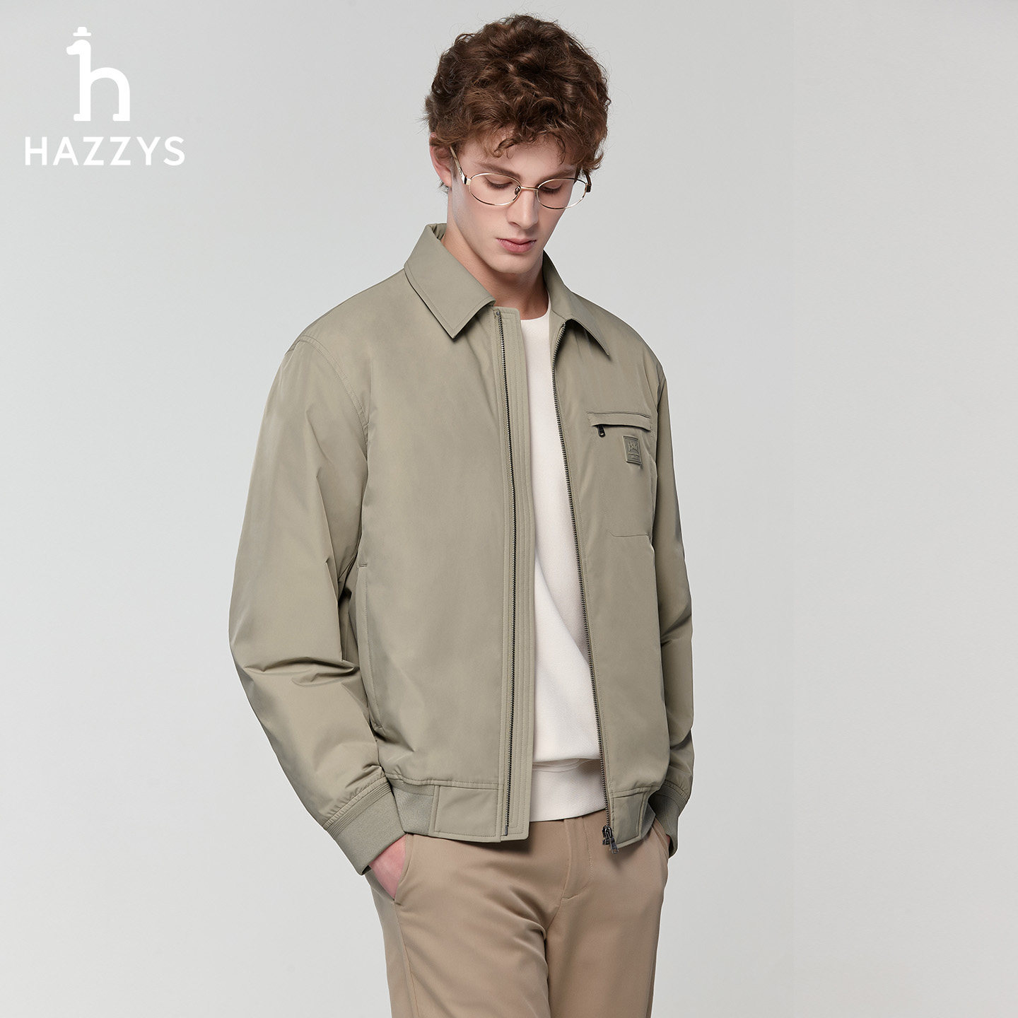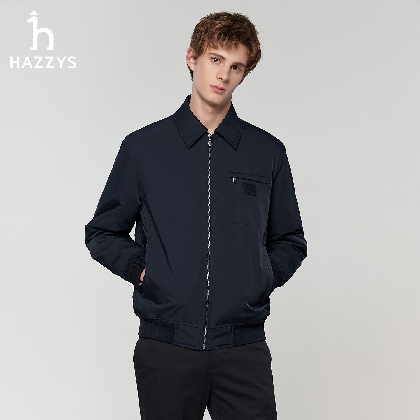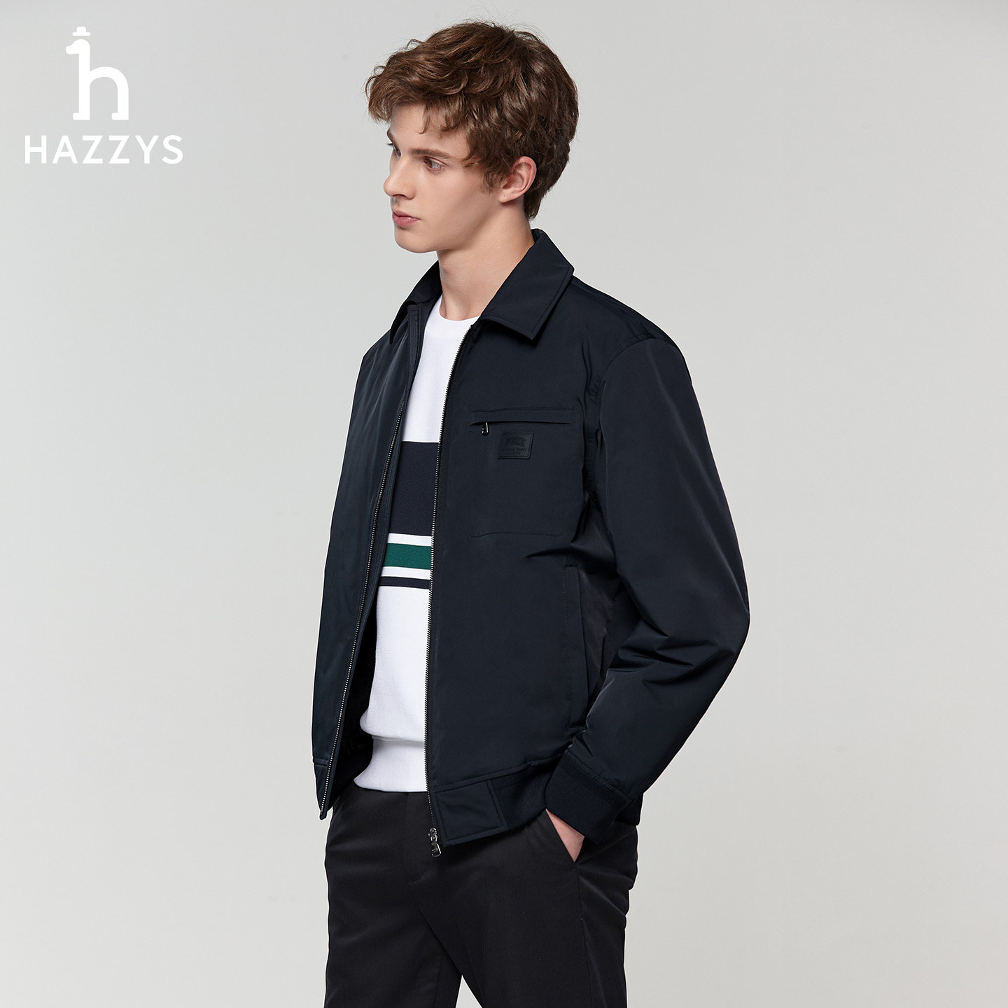 男士 Hazzys哈吉斯春季 通勤休闲保暖拉链夹克外套上衣 翻领棉服