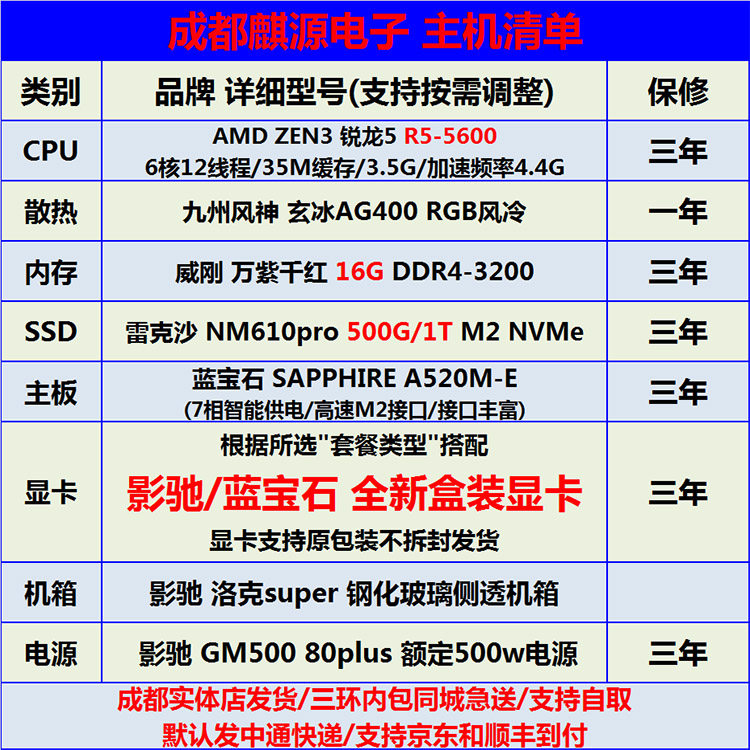 6750gre 6500xt 5060 8g台式 游戏主机 AMD锐龙r5 电脑组装 5600