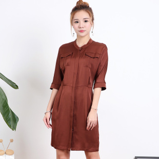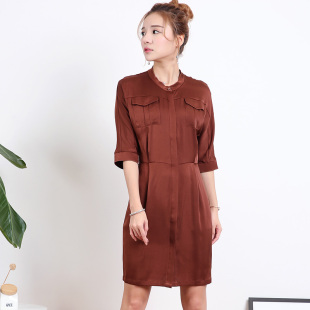 真丝连衣裙特价 连衣裙子思宝琦 夏女潮品纯色显瘦简约桑蚕丝短袖