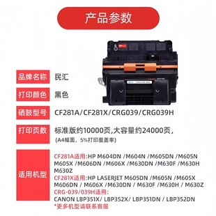 M630f 鼓 M630dn晒鼓M605dn HP281A标准版 M630z M605x打印机M606dn M605z 民汇适用惠普CF281A硒鼓M604