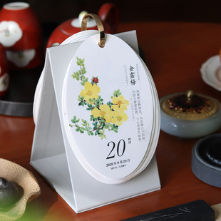 2026年新款 花开有时日历特别版 日历翻页马年台历桌面摆件创意国风水彩花卉植物插画节气古诗词图书绘森活圣诞礼物 贺卡 赠香氛片