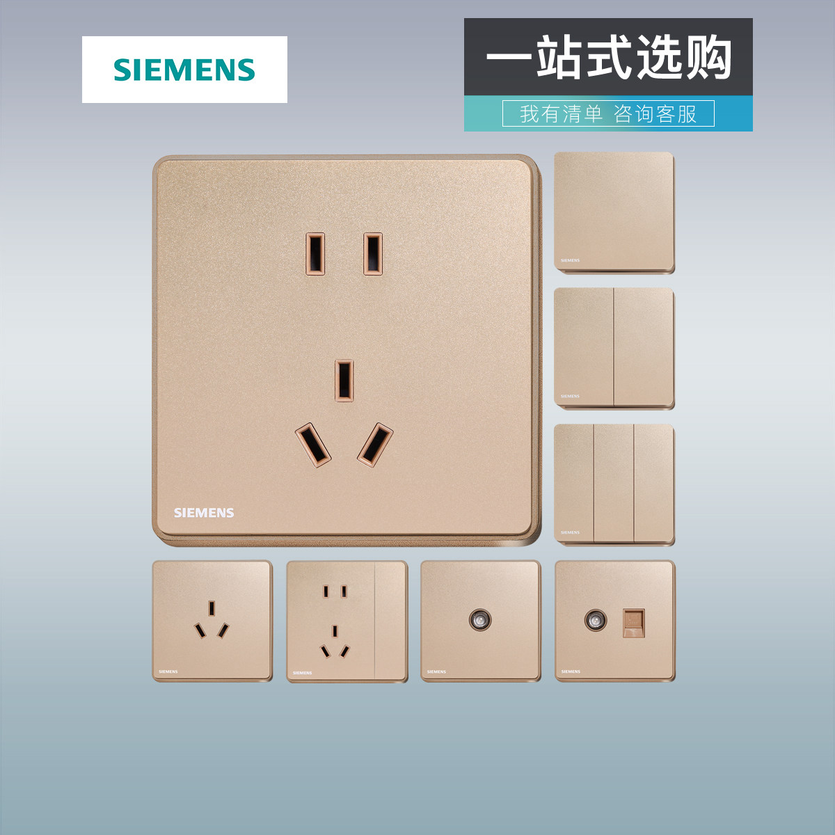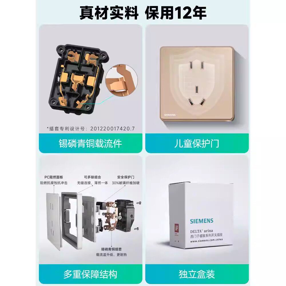 西门子开关插座面板睿致玫瑰金色睿智86型家用四开双五孔三孔16A