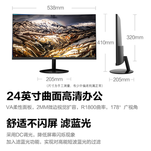HKC显示器24英寸1080P高清100HZ家用办公75HZ电脑IPS屏幕C240曲面