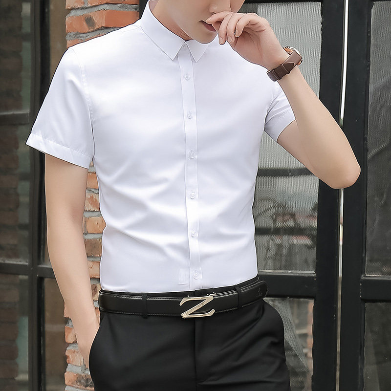 白衬衫 男士 潮流长袖 薄款 黑色衬衣寸 2020韩版 短袖 商务正装 夏季 半袖