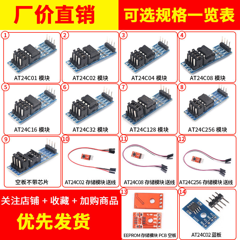 EEPROM存储模块I2C接口AT24C01 128 256可选