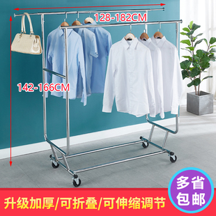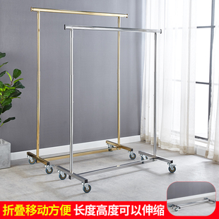 服装 单杠衣架创意不锈钢钛金带轮橱窗道具 展示架折叠升降落地式