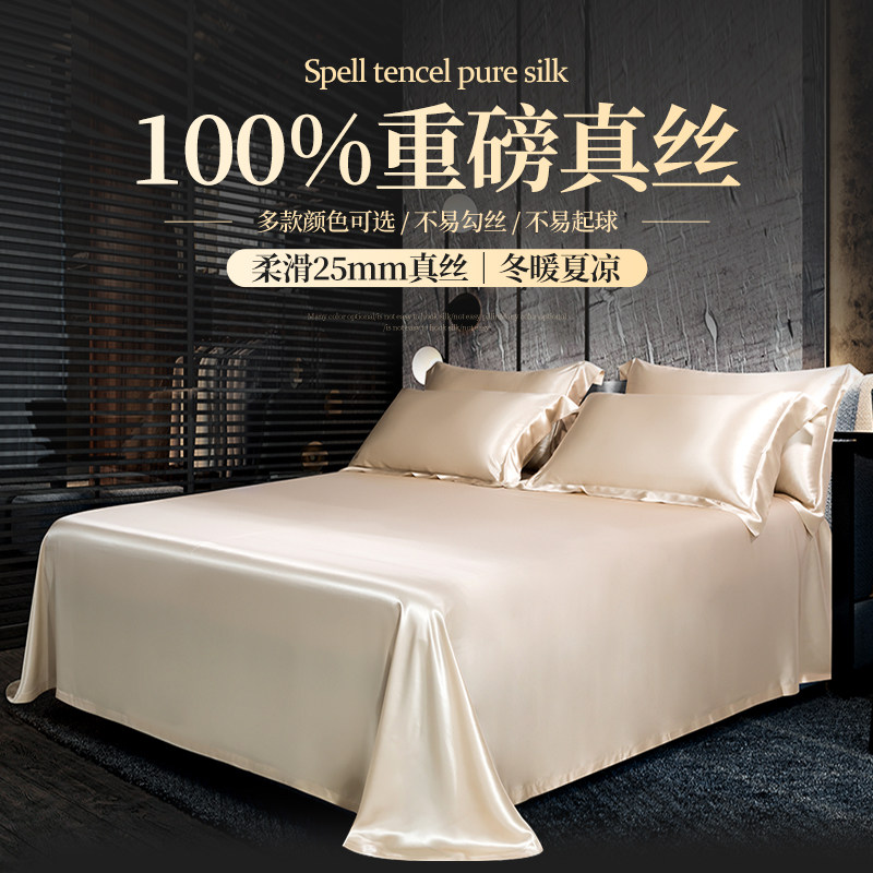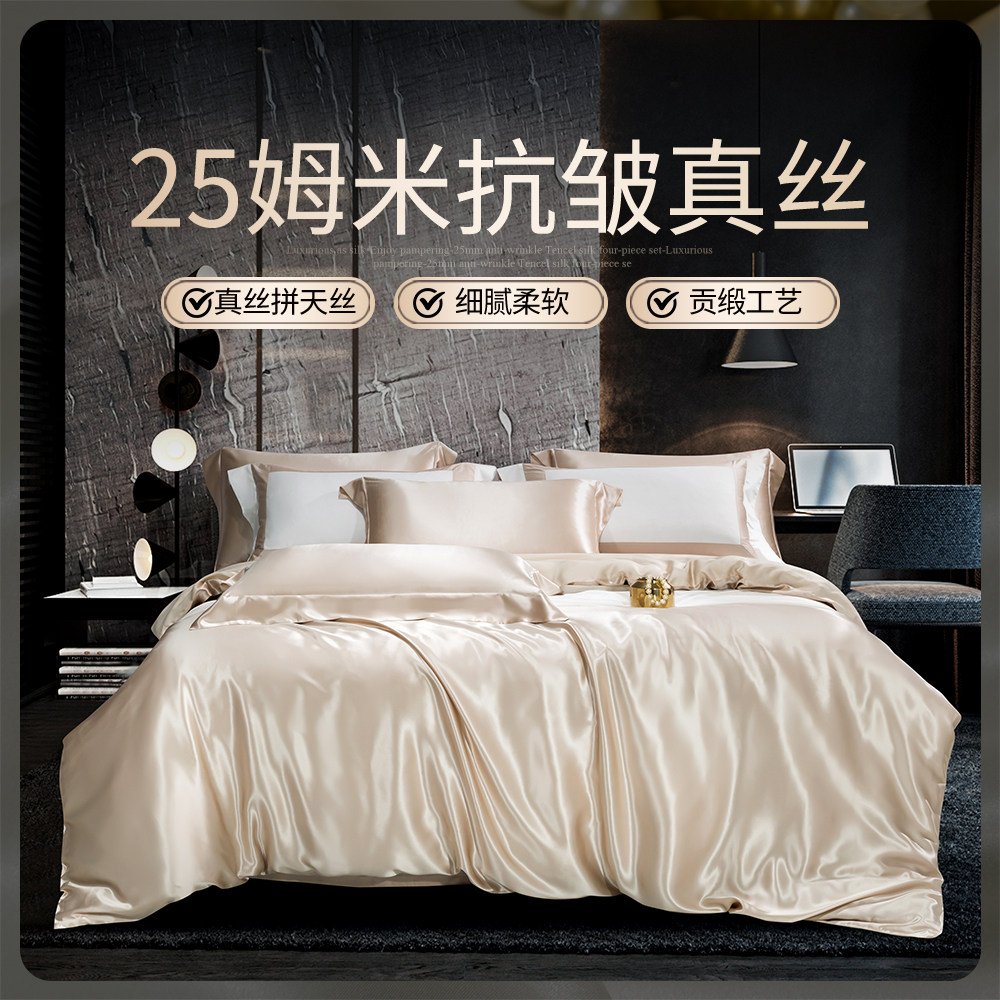 苏迷真丝四件套纯素色100%桑蚕丝绸高端简约定制被套天丝床上用品