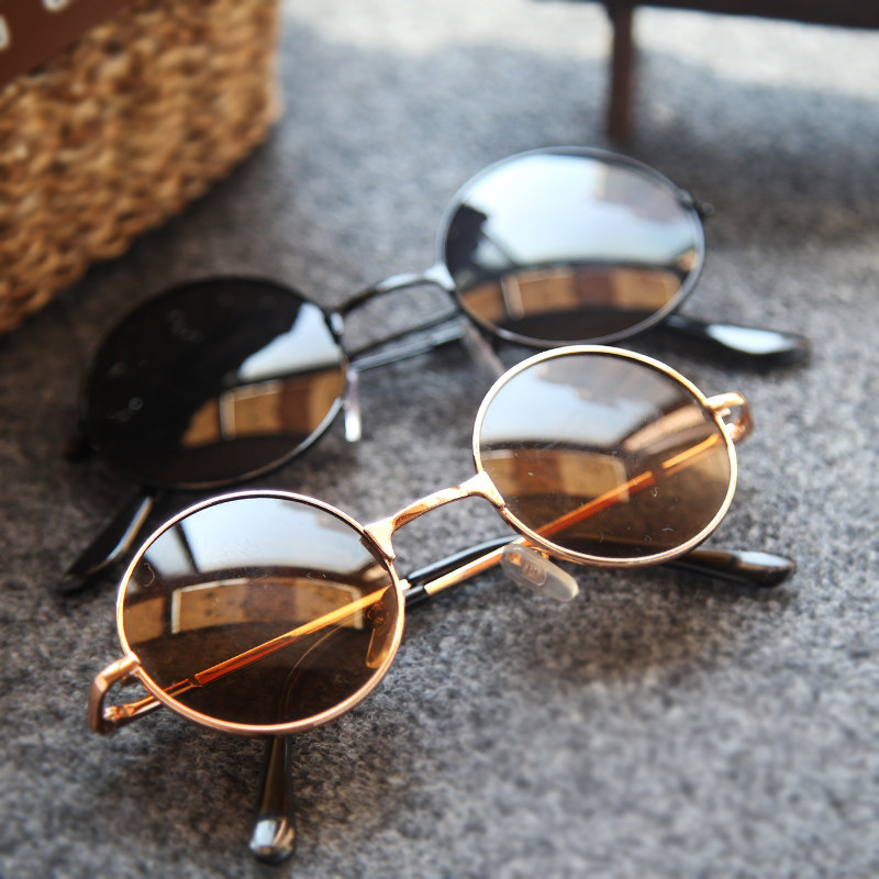 儿童太阳镜小孩小童宝宝复古金属小圆形墨镜可爱男童萌小眼镜潮女