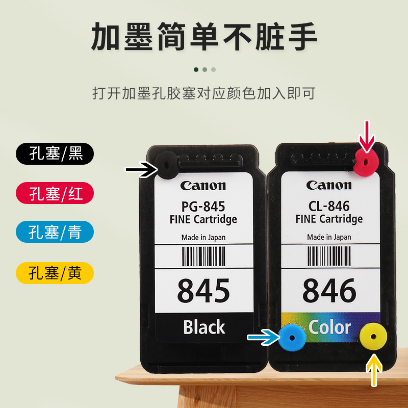 MG3080 TS3380黑色846彩色 TS3480打印机墨盒 TS308 TS208 TS3180 MG2980 MG2400 MG2580S 佳能845墨盒 原装