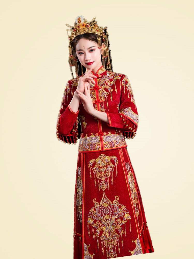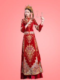 金梅报喜 高级感刺绣订婚过年礼服长袖 画报夫人新中式 红色旗袍冬装