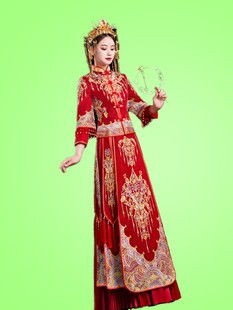酒店开业礼仪迎宾旗袍女大红色长款 中国风复古颁奖礼服合唱演出服