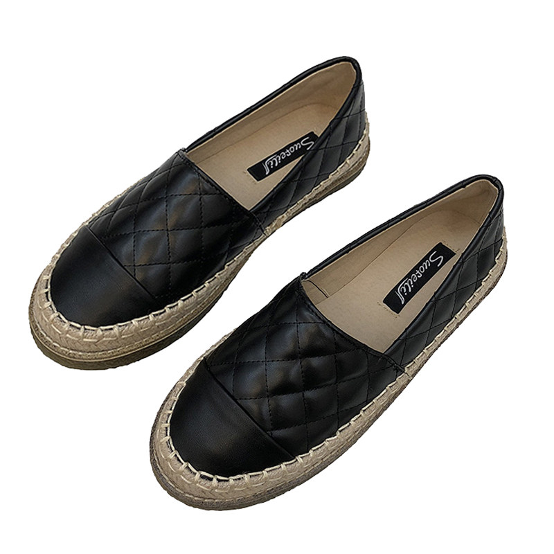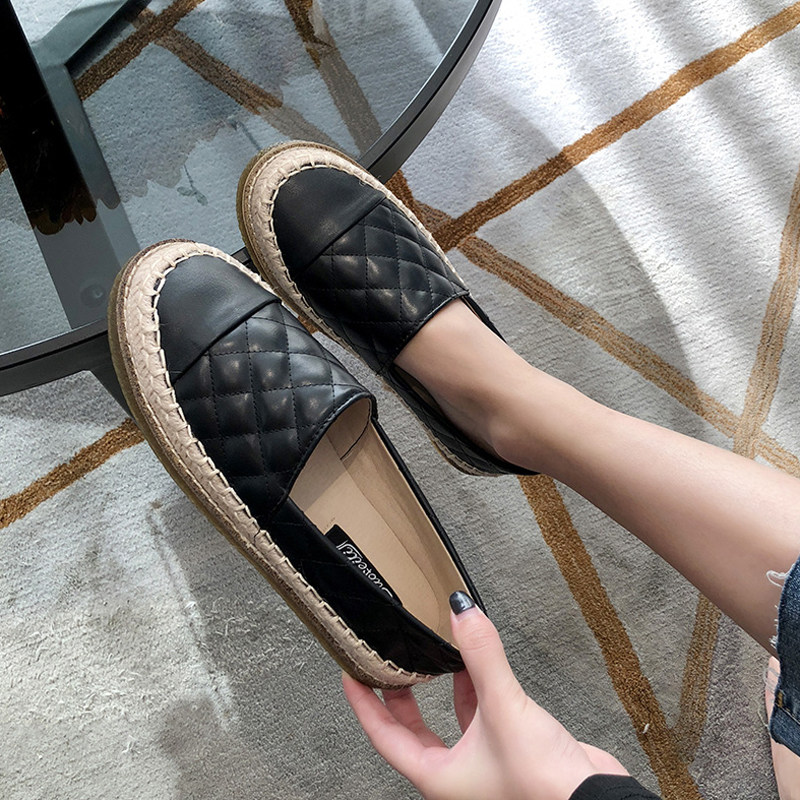 软底草编懒人一脚蹬乐福鞋 平底小香风菱格厚底鞋 女2026新款 渔夫鞋