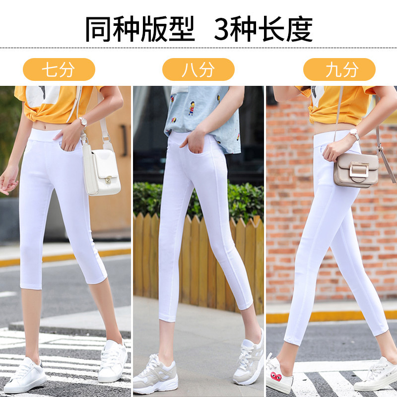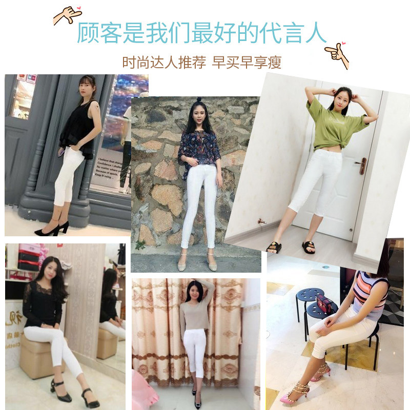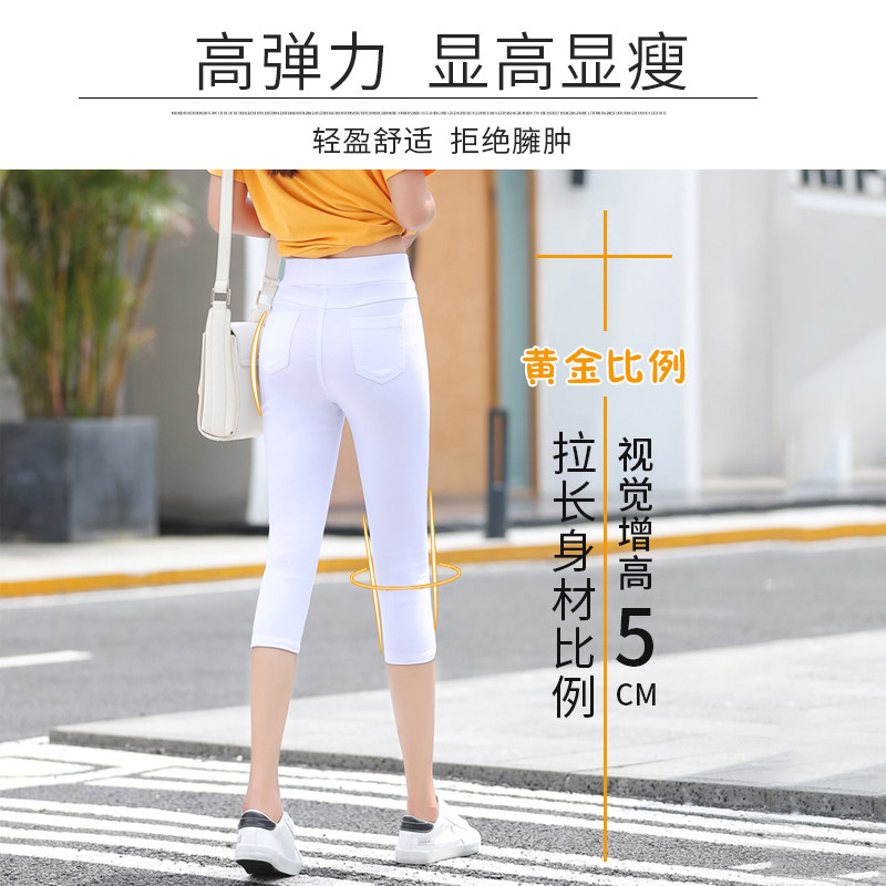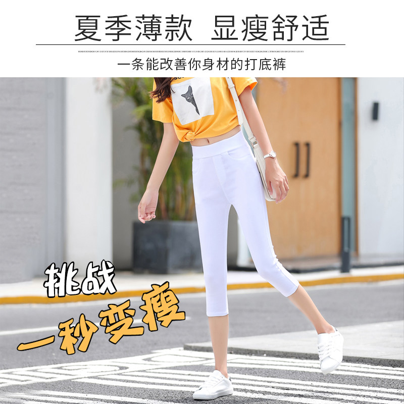弹力紧身小脚7分中裤 白色七分打底裤 高腰显瘦大码 薄款 女外穿夏季