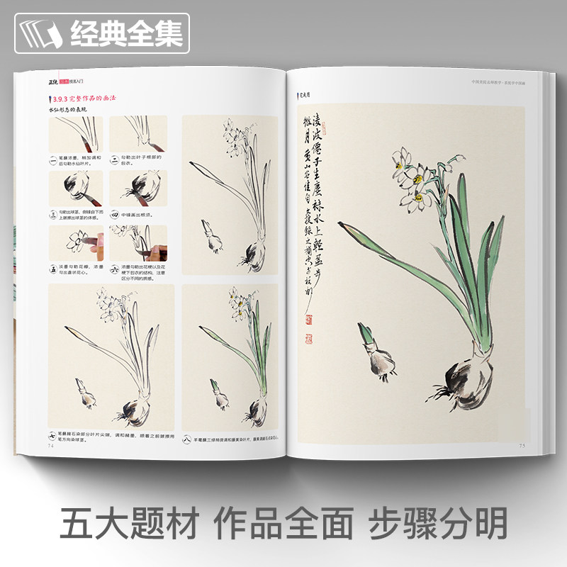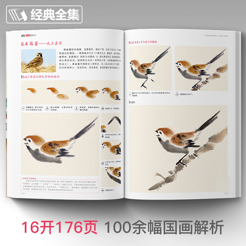 中国画初学者零基础教程书籍小写意花鸟动物牡丹梅兰竹菊临摹画册少儿童教材水墨画集图册范本 正统国画技法入门 杨建飞 全集 经典