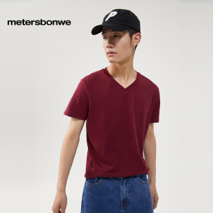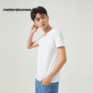 百搭纯棉日系内搭打底衫 V领修身 t恤男夏季 美特斯邦威奥特莱斯短袖