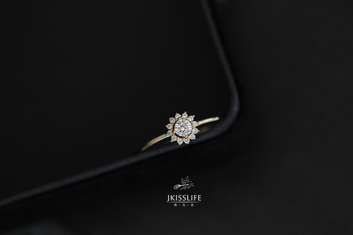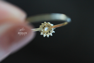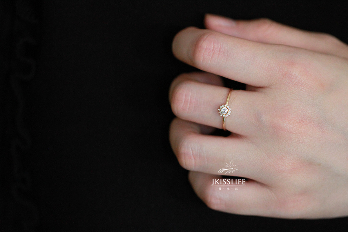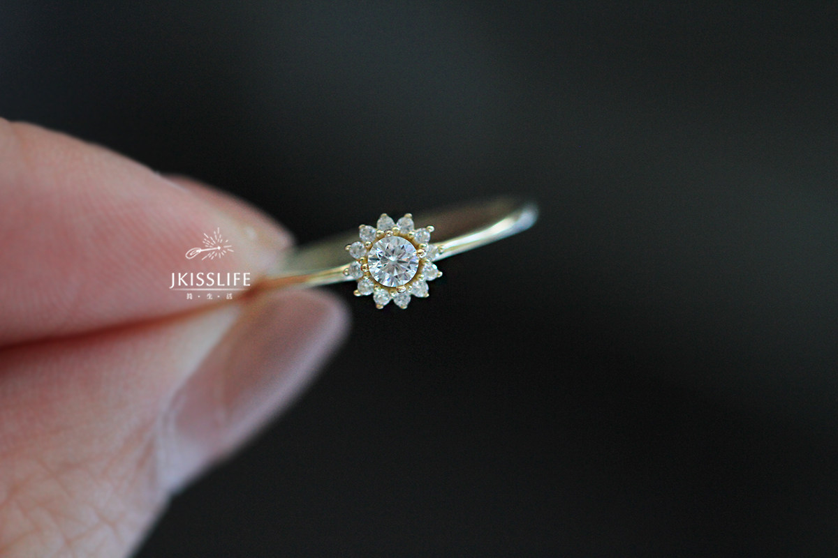 浪漫纤细戒指指环礼物 9K黄金日系镶嵌精致满钻花朵 JKISSLIFE