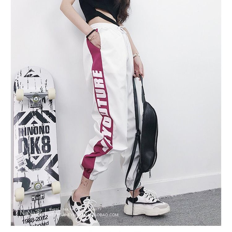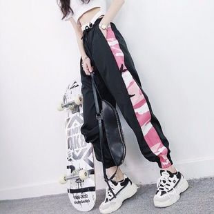 潮宽松束脚休闲裤 原宿bf风hiphop学生韩版 女春夏哈伦裤 ins运动裤