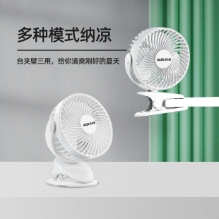 手持学生宿舍电扇床上超长续航婴儿电风扇 随身充电式 奥克斯小风扇静音办公室桌上小型便携式 迷你usb夹子式