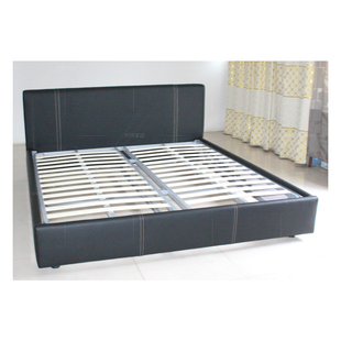 1500 简约皮床订制 双人床 黑色皮艺床 2000床垫加床 带床箱软床