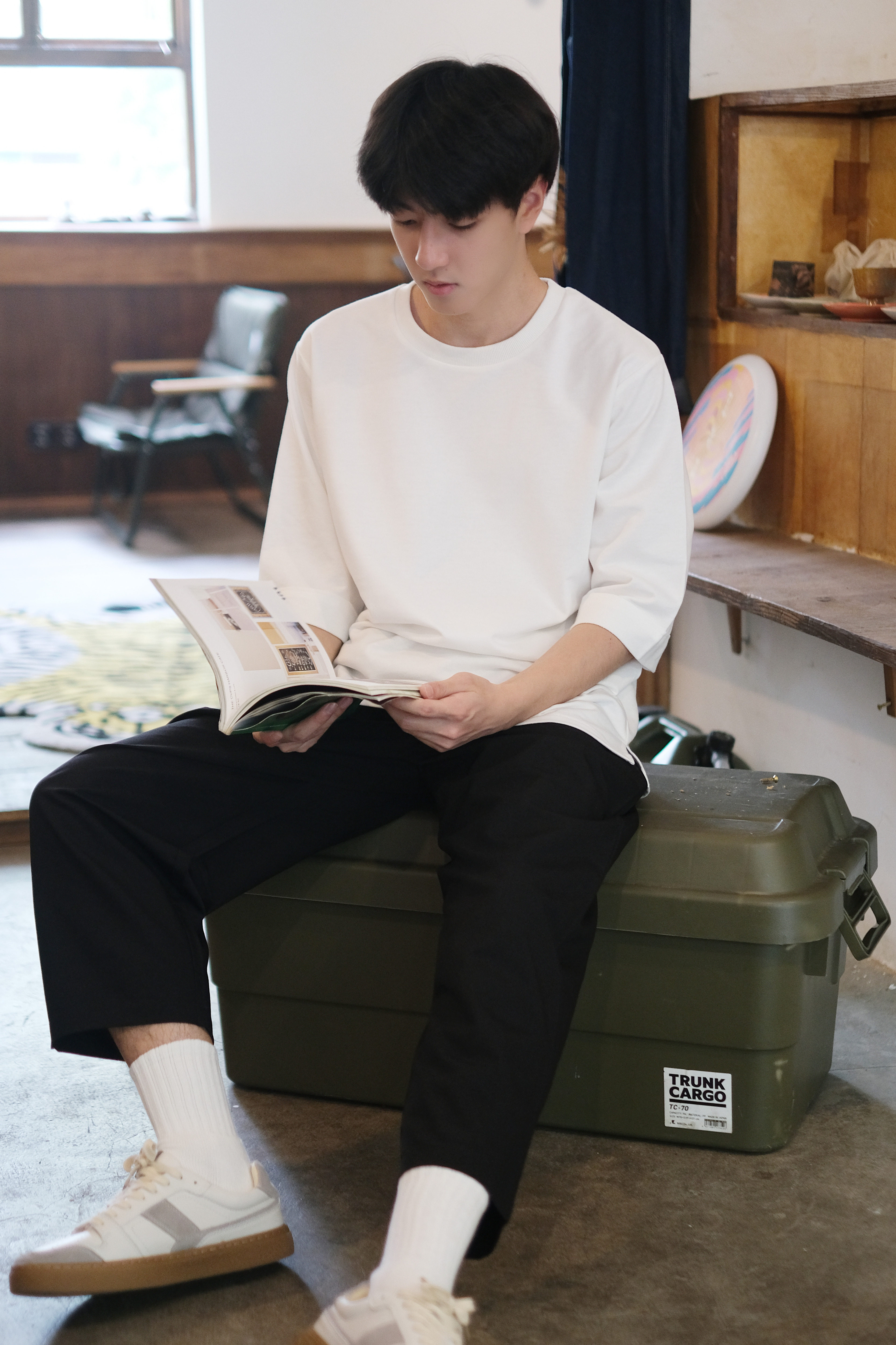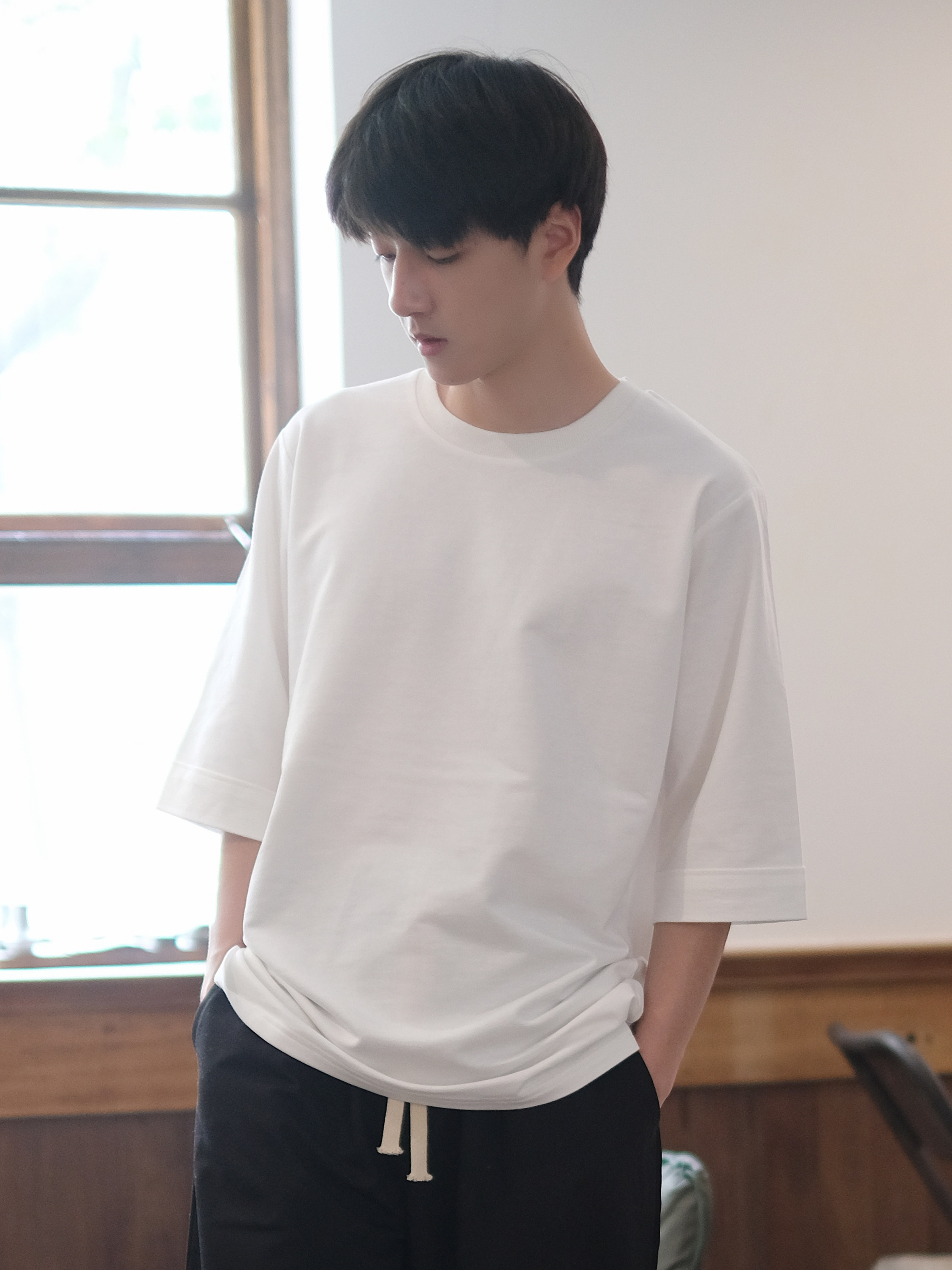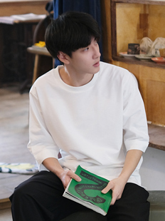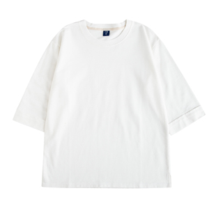日系袖 圆领短袖 口翻边重磅七分袖 纯棉宽松中袖 男春夏 T恤 2025新款