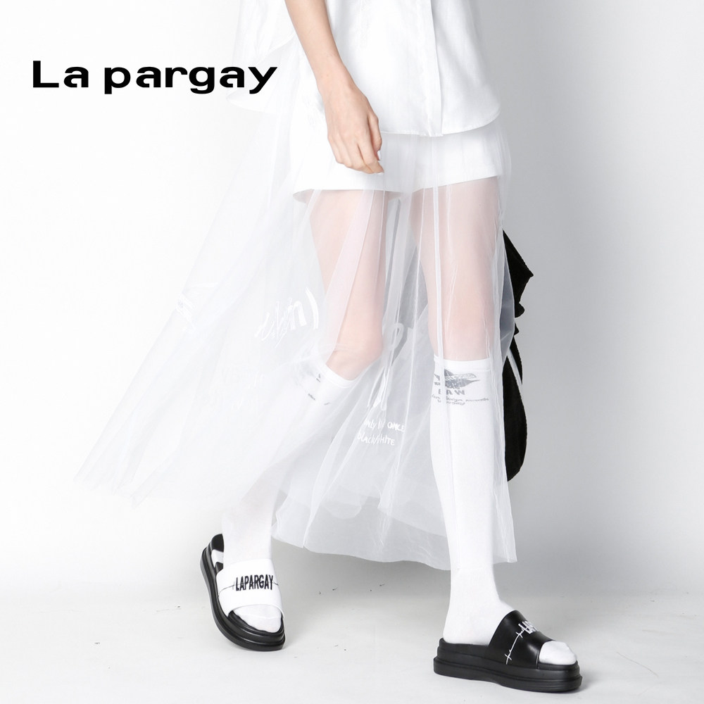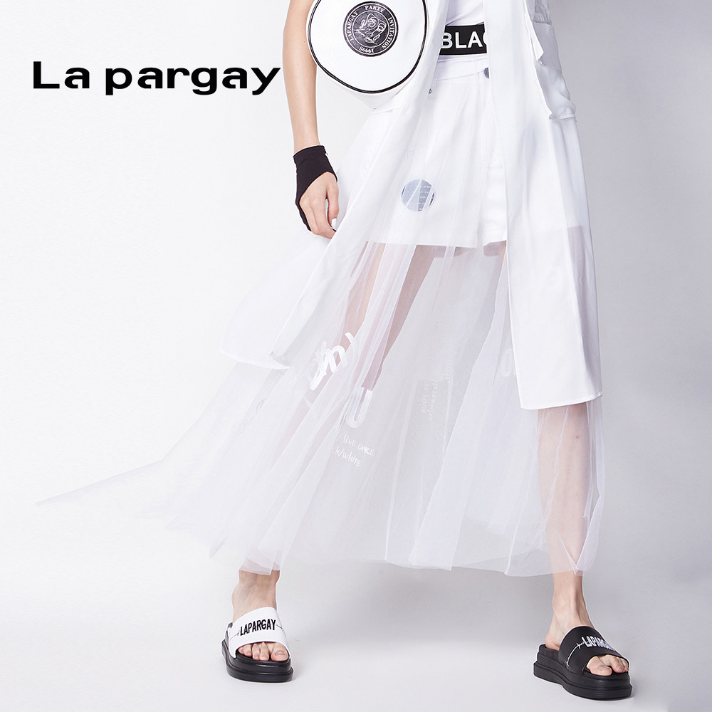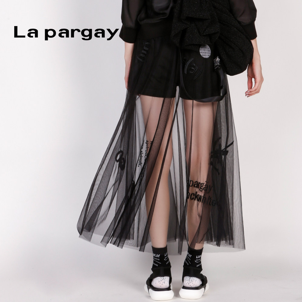 Lapargay纳帕佳2020新款 小仙女 黑白色网纱绣花透明半身长裙女夏季