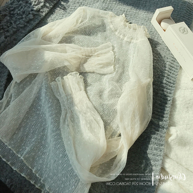 长袖 透视高领蕾丝打底衫 内搭洋气纱衣冬 2019年新款 网纱上衣女秋装