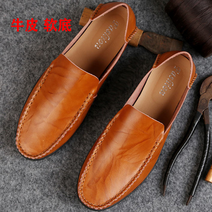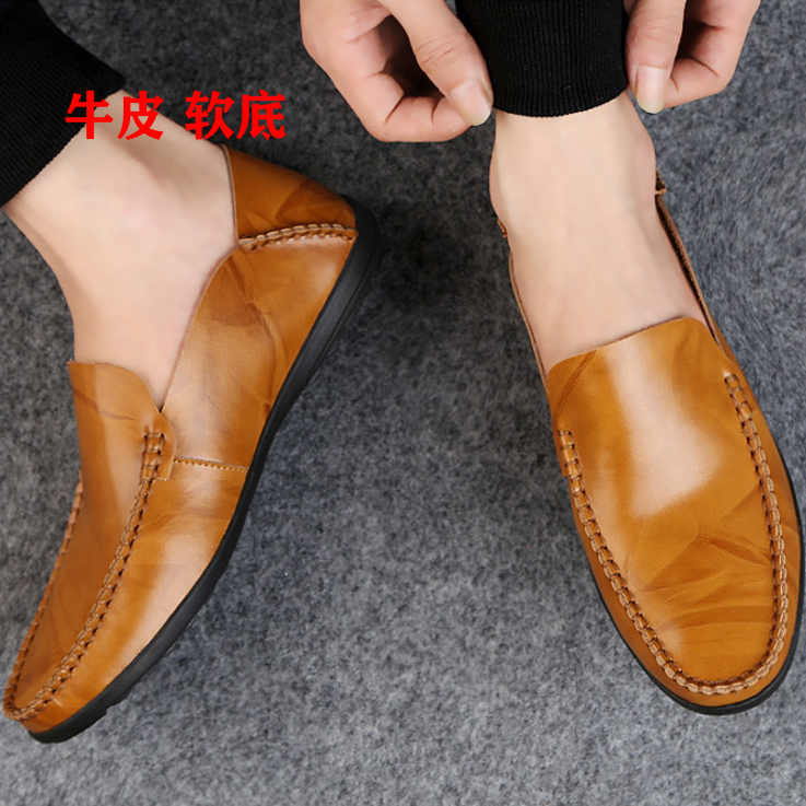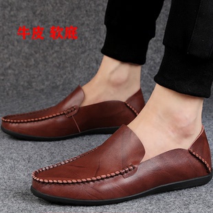 韩版 驾车豆豆鞋 潮流真皮男鞋 休闲皮鞋 子 2025新款 男懒人鞋 浅色四季