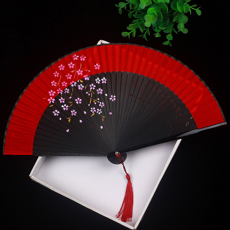 光亮舞蹈扇子真丝长飘酒红渐变长绸扇儿童古典舞跳舞专用表演道具