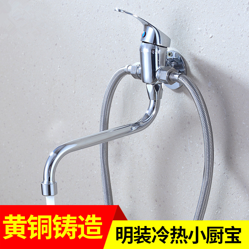 全铜体明装 水槽小厨宝混水阀旋转洗菜盆龙头 厨房冷热水龙头挂墙式