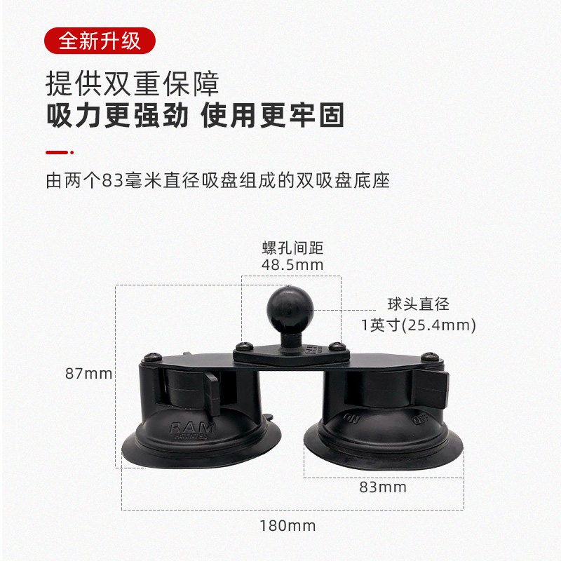 RAM车载双吸盘平板支架 iPad汽车内前排吸盘平板娱乐车载导航支架