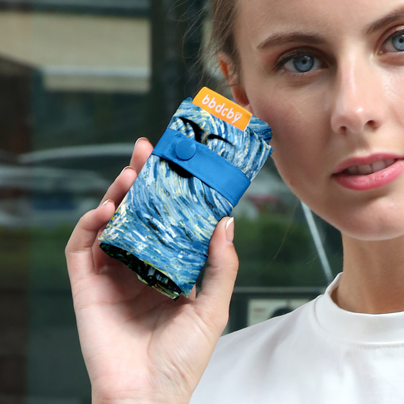 梵高星空折叠购物袋女ins风大容量单肩环保袋超市买菜旅行收纳包