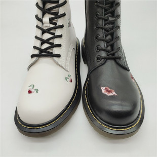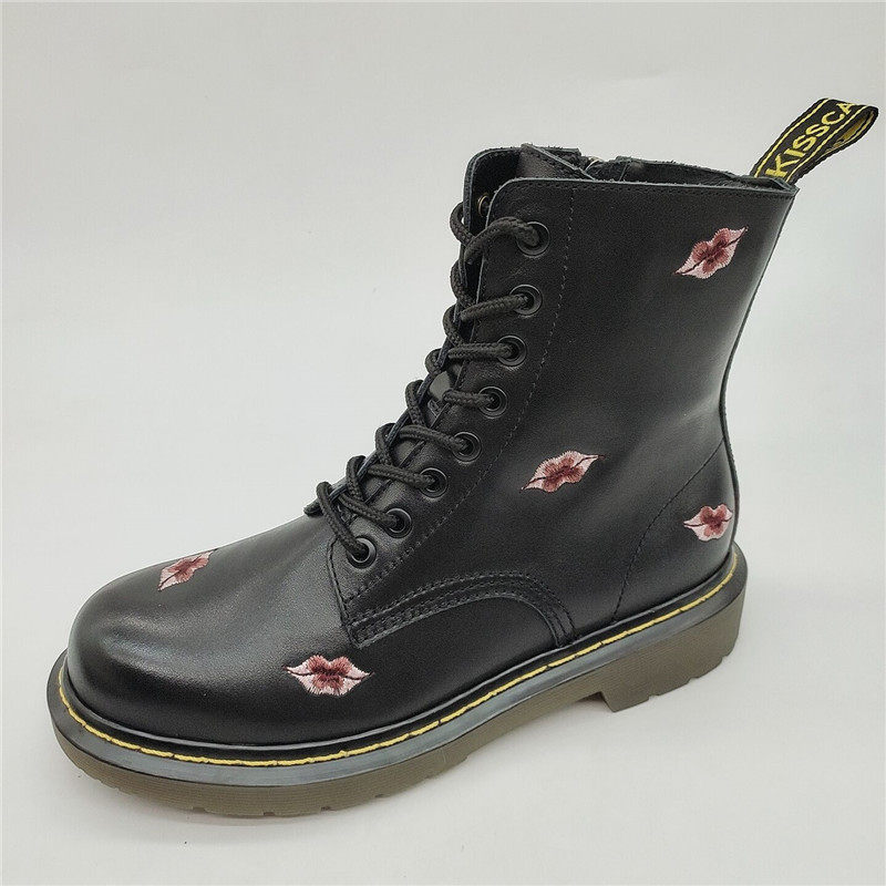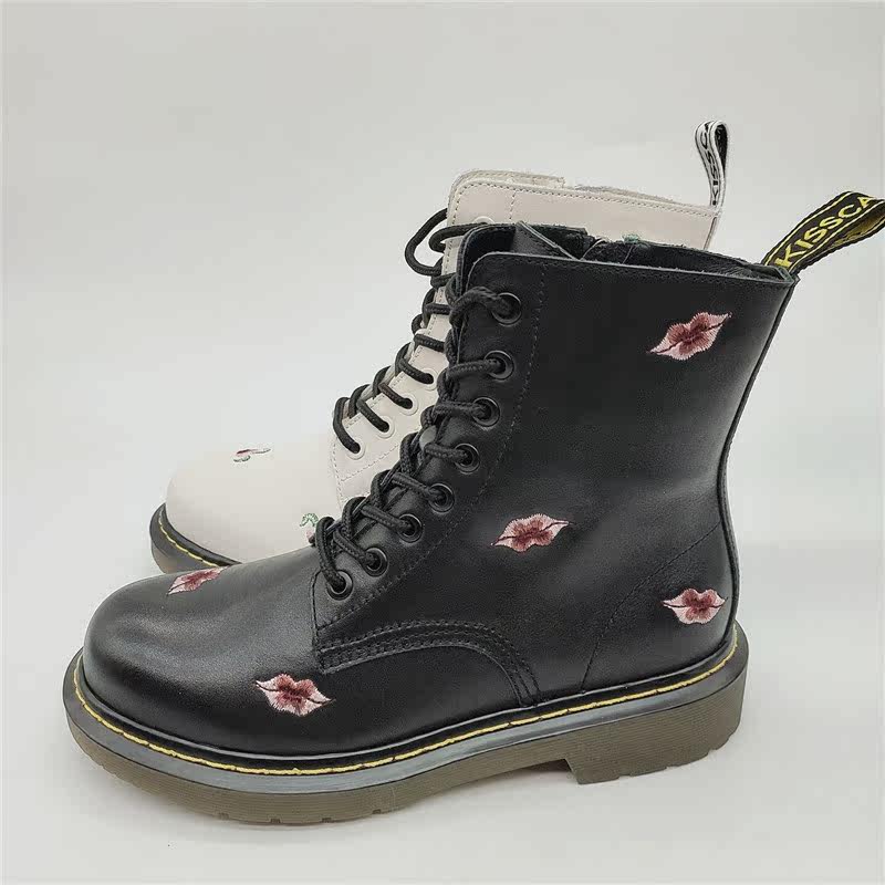 KISSCAT接吻猫2020秋冬羊毛马丁靴圆头刺绣暗黑短靴女KA10548