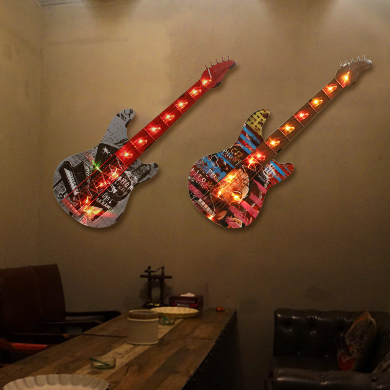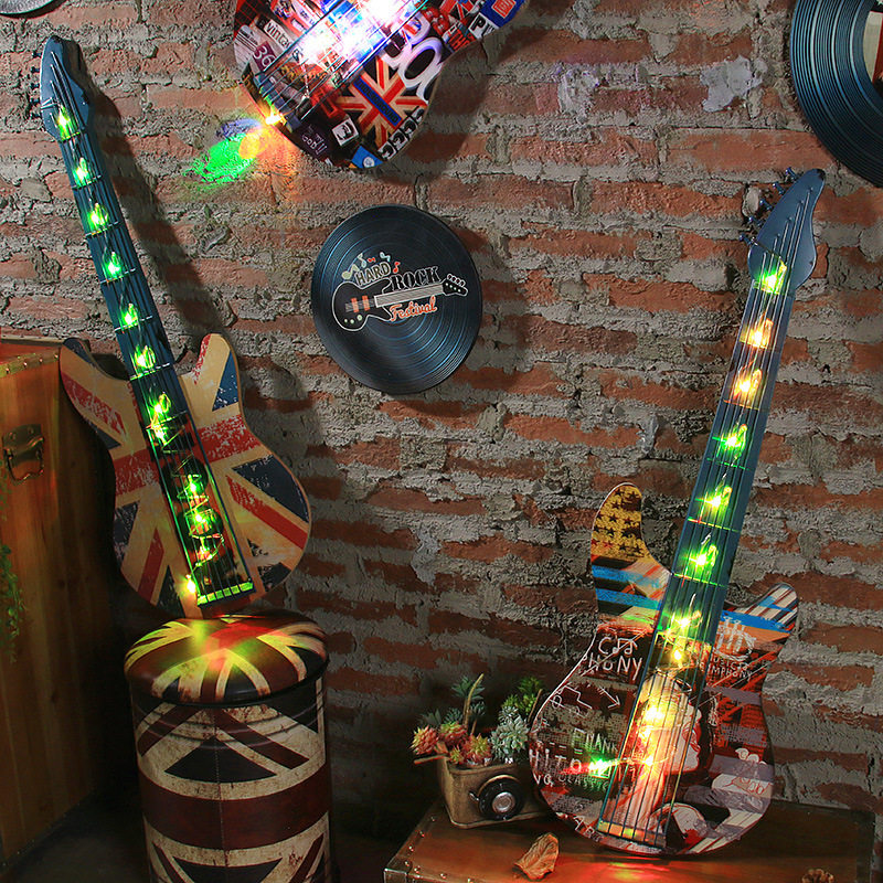 饰品 创意酒吧餐厅家居墙面壁饰乐器挂件装 美式 复古LED灯吉他壁挂