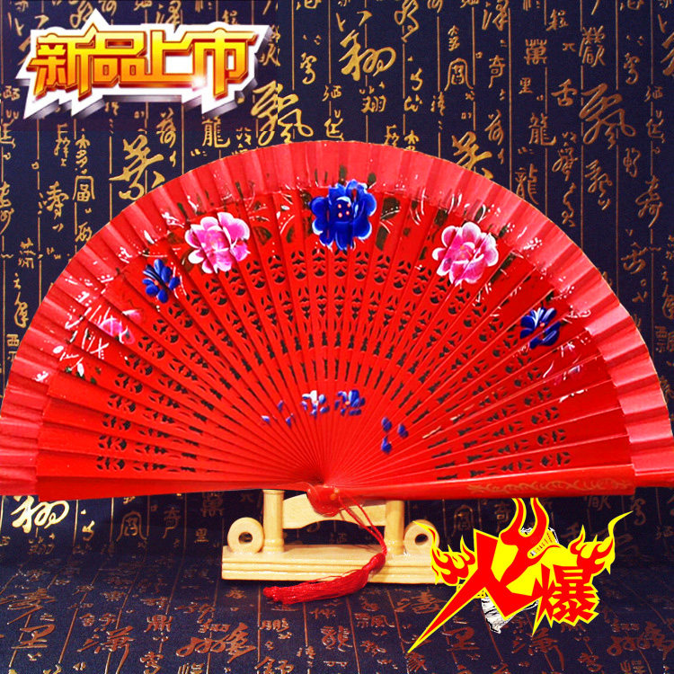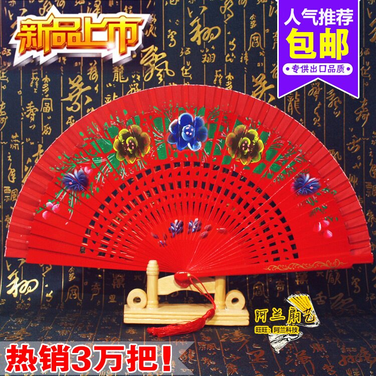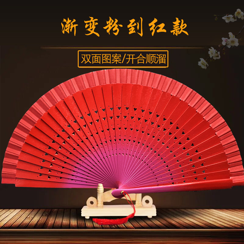 易开合红色双面西班牙爵士团体舞蹈扇子走秀跳舞女扇木质工艺折扇