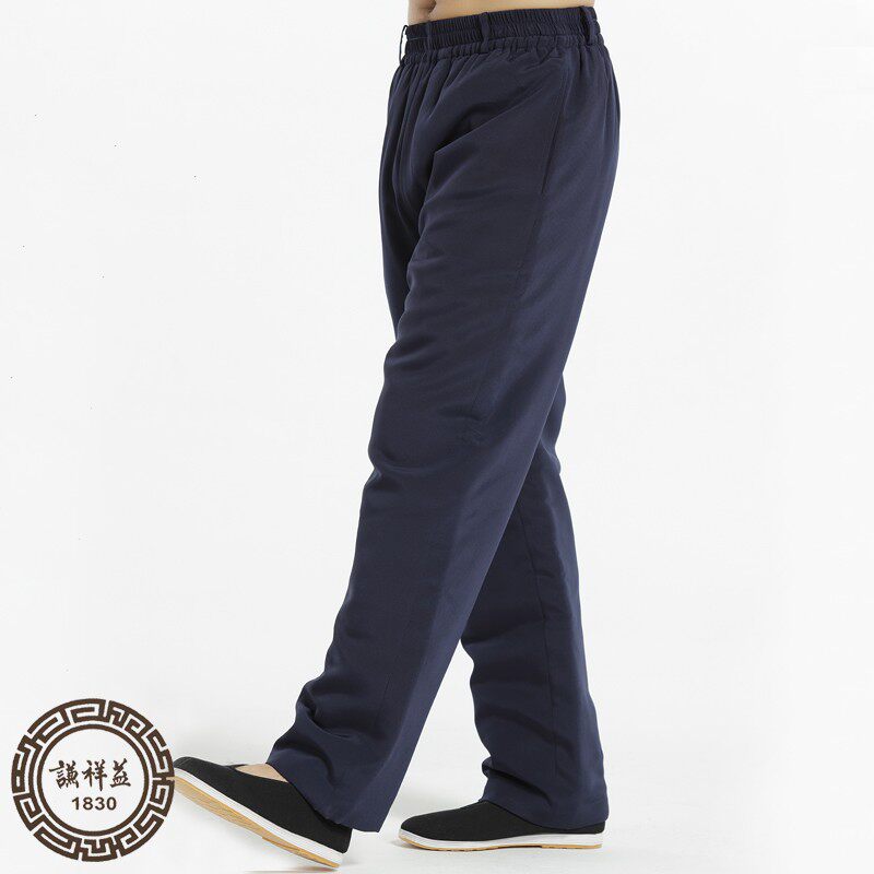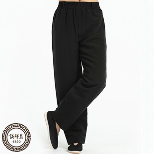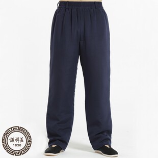 中国风民族松紧高腰宽松冬长裤 中式 重磅真丝传统复古休闲直筒棉裤